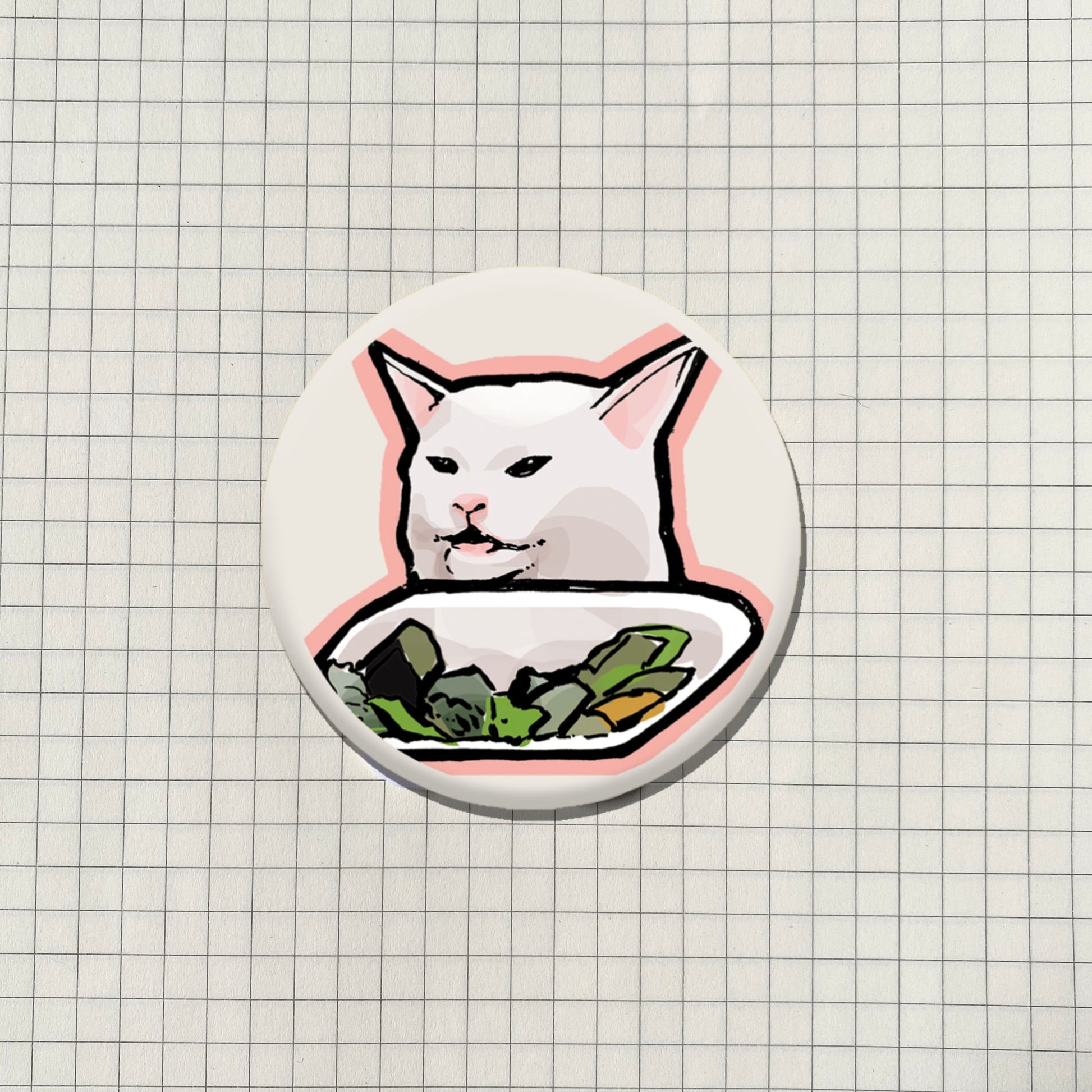 Salad Cat Meme Button Pin